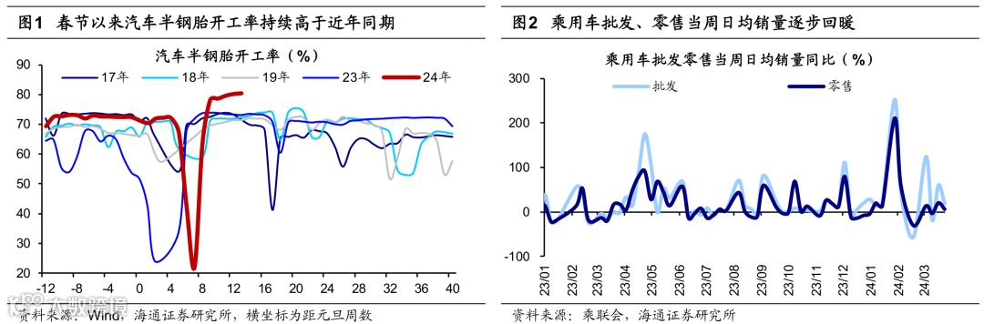 维度1:从宏观高频数据看,一季度汽车和消费数据亮眼,年后基建数据改善。在稳增长政策发力背景下,宏观经济出现回暖迹象。从更高频的周度指标看,近期宏观数据主要有以下三大亮点: