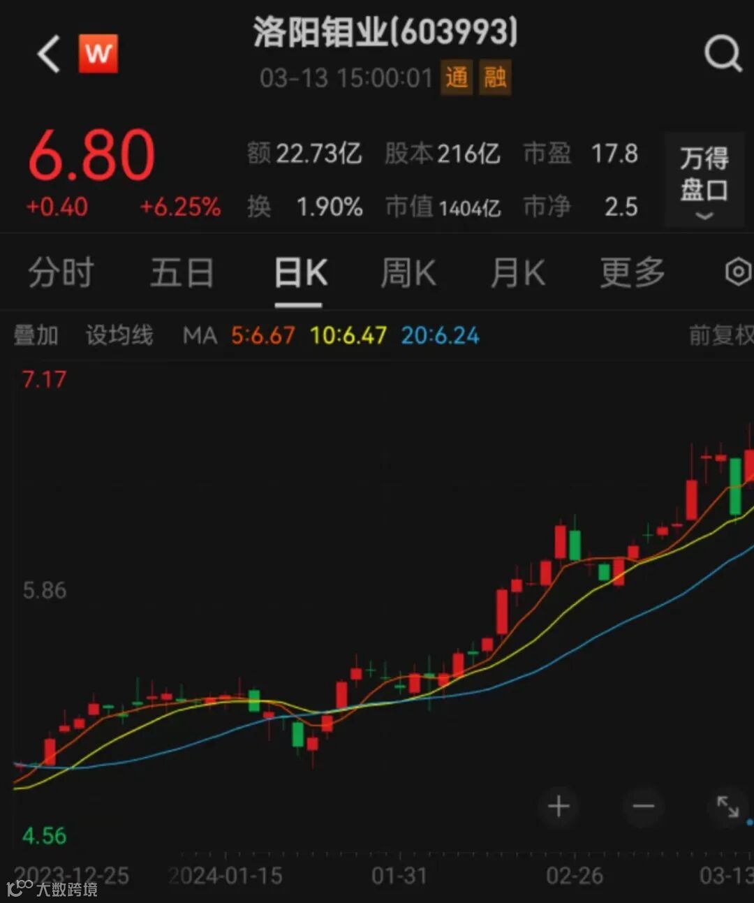 当前正值年报密集披露期,一些行业龙头公司在发布亮眼业绩后股价大涨,成为市场关注焦点。有色行业龙头洛阳钼业便是其中之一,该股3月13日盘中一度涨超8.5%,盘中股价创下2年来新高,收盘涨幅回落至6.25%,最新A股市值回到1200亿元以上。