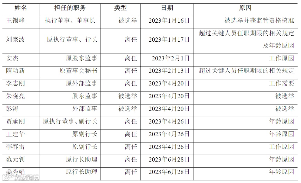 此外,2023年间,青岛农商银行高管团队也进行了较为明显的变动。多位高管因为年龄原因、工作原因以及超过关键人员任职期限的相关规定等原因离任,包括该行原行长刘宗波、原董事会秘书隋功新、原副行长贾承刚、原副行长王建华、原副行长李春雷、原行长助理范元钊以及原行长助理姜秀娟,陆续于2023年上半年离任。