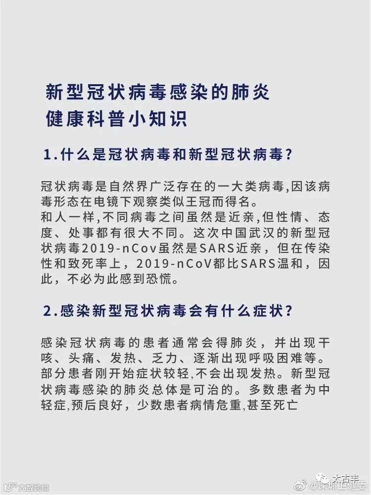 1月19日,深圳和北京也出现了新型冠状病毒感染肺炎患者,专家称,武汉肺炎疫情处于可防可控范围内,但新型冠状病毒感染的来源还未发现,其传播途径并未彻底查清,病毒是否会突变尚未确定,武汉卫健委发布了一些防范的注意事项。