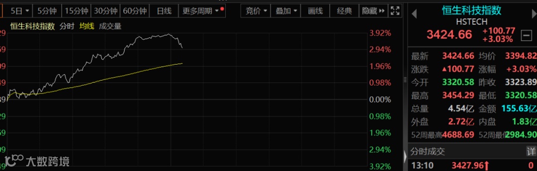 而更令人奇怪的是港股。恒生指数午盘收涨2.33%报16539.01点,恒生科技指数涨3.79%报3449.79点,恒生中国企业指数涨2.75%报5715.71点。昨天,港股市场三大重要指数跌幅皆比较大,但今天上午却一举收复。