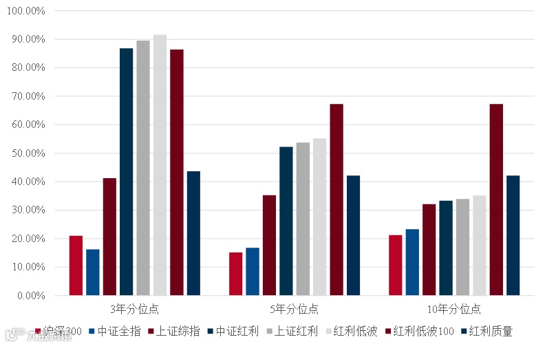 从交易拥挤度来看,数据显示,中证红利指数近10周周度平均成交额422.32亿元,中证全指该项数据为8475.38亿元。中证红利相对于中证全指成交额占比4.98%,处于近1年/3年的65.31%/46.76%分位点,拥挤度较为适中。