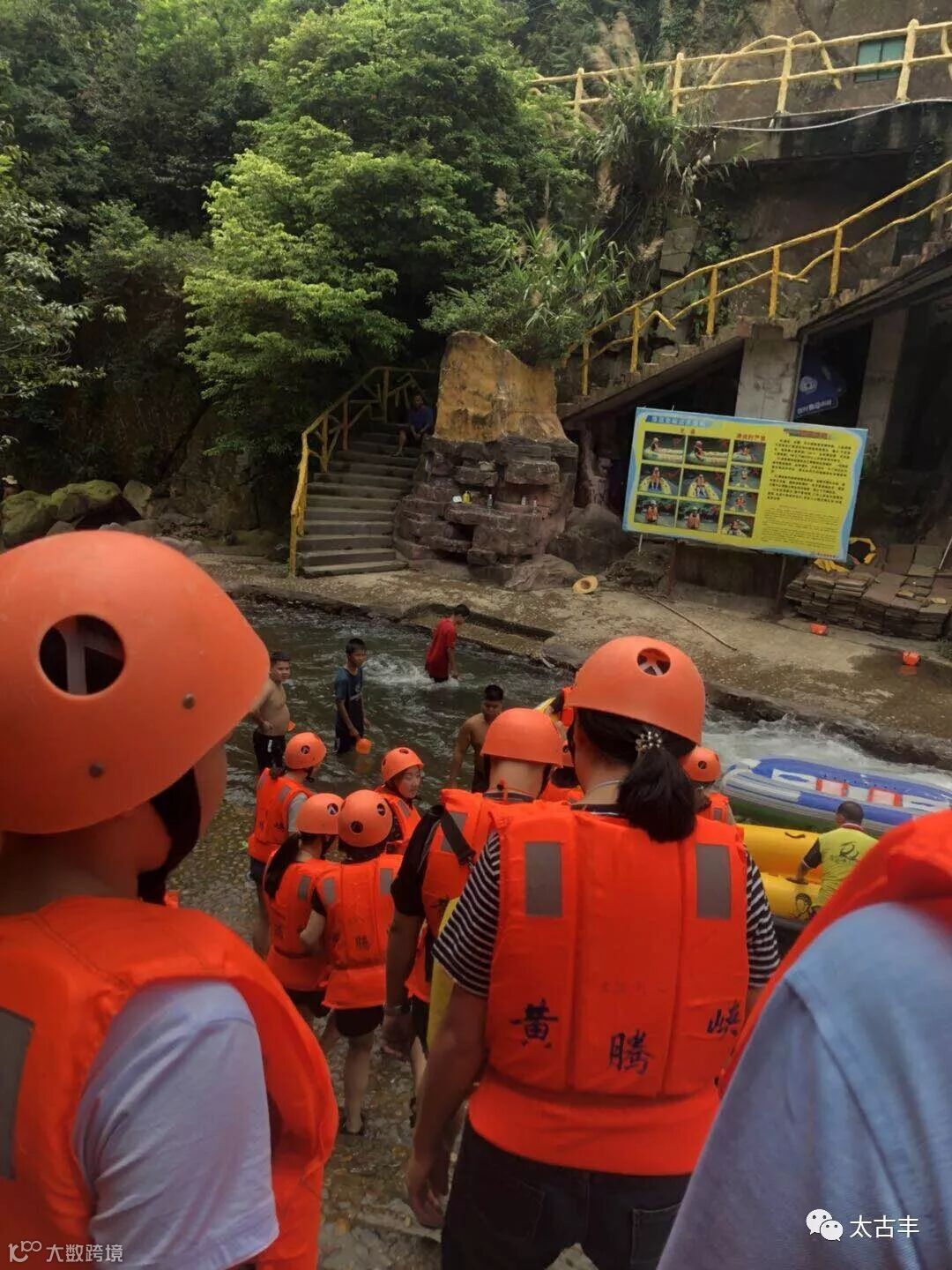 大家怀着兴奋的心情,穿好救生衣和安全帽,准备上船开始漂流咯。我们这次选择的是猛士漂。天然猛士漂河道长2.8公里,漂时90--100分钟,过程可体验悬崖转艇、猛龙穿洞、卷龙出寨、杜鹃映红、瀑布飞艇(最高落差12米)、青蛙跳潭等有惊无险的刺激和观赏两岸如画的山色。