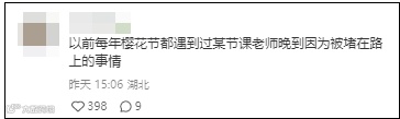 有网友表示,武汉大学每逢樱花季,经常因为游客过多引发校内拥堵。