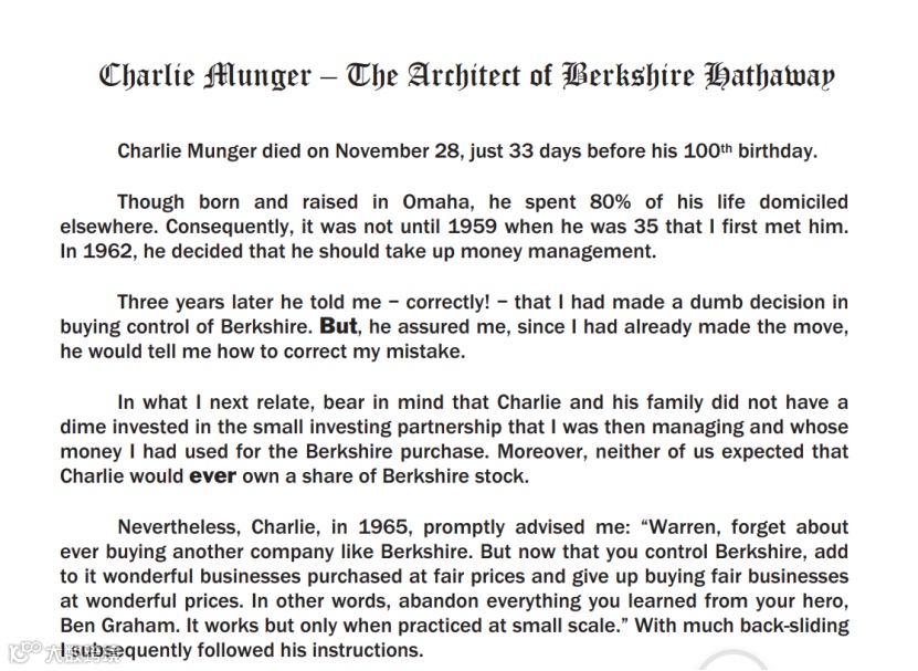 那么,巴菲特在信中都说了些什么呢?来看报道!