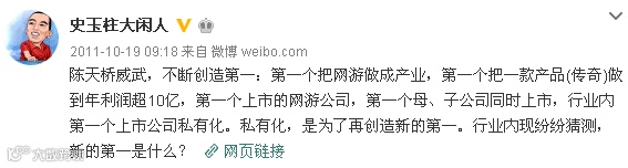 相对而言,投资、特别是战略投资是陈天桥最擅长的!