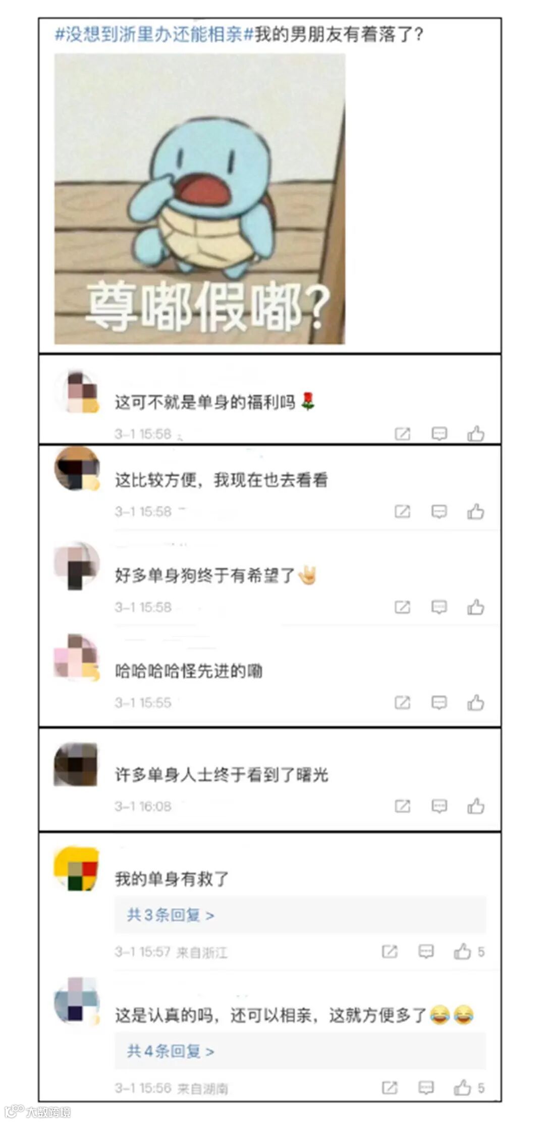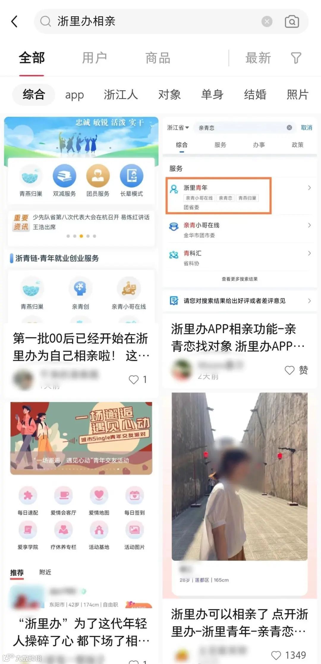 在社交网站上,不少网友分享了“浙里办”的“亲青恋”服务,将其称作相亲角,有人感慨称,“浙里办”为单身人士操碎了心。