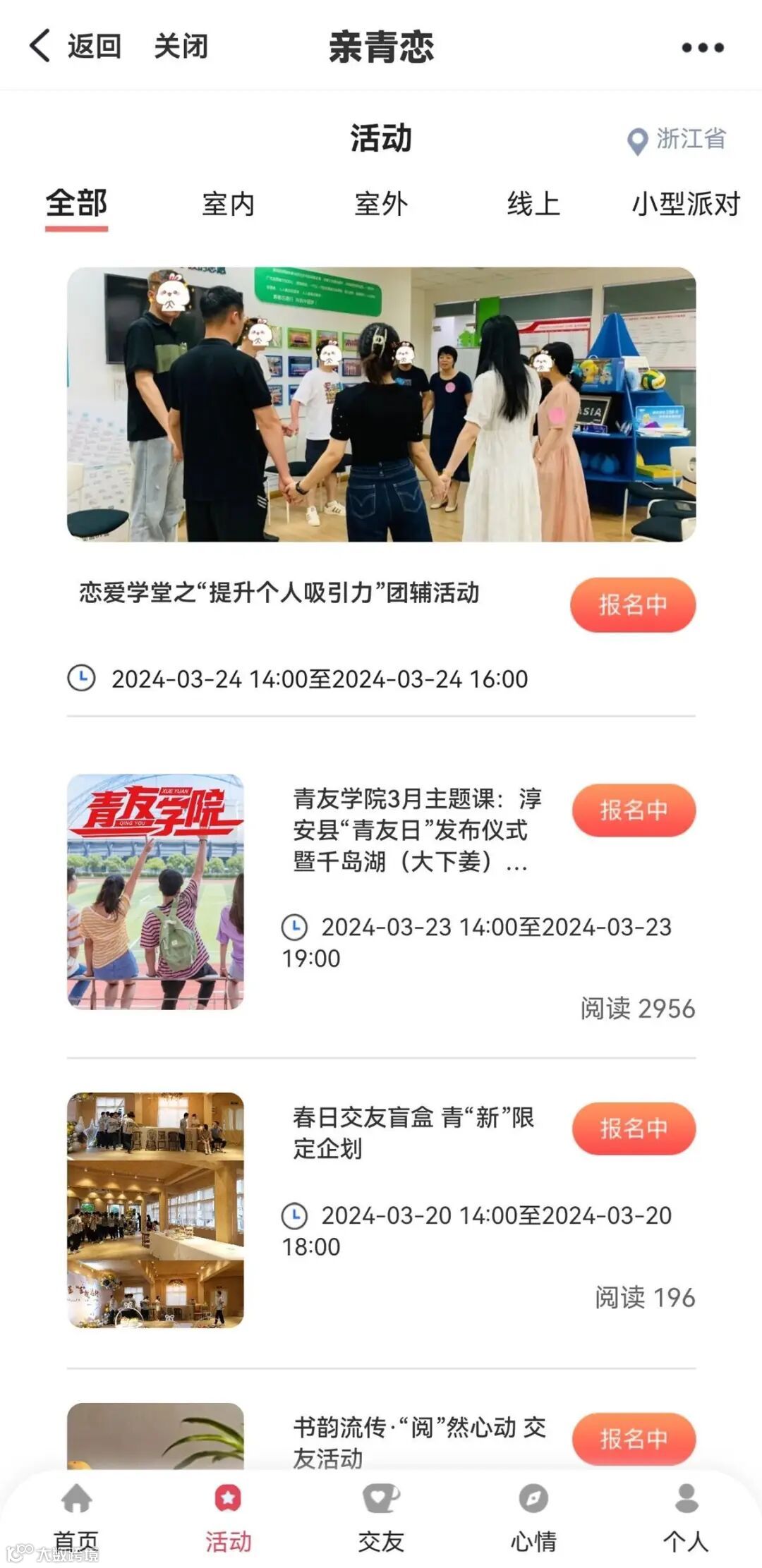 3月7日,“亲青恋”工作人员告诉极目新闻记者,为了推动单身青年“脱单”,浙江省推出了这一公益服务。要使用这一服务,首先要实名注册,平台会对接浙江省公安、民政、人社等部门的数据,只有比对成功,注册者才能收到邀请码,使用交友服务。实名注册成功者,可以对心仪对象发起打招呼、留言,平台还提供浙江省内不同城市的线下交友活动,有意愿者可以免费参与,包吃包住。