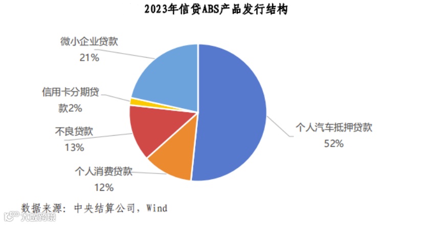 从截至2023年末的存量规模看,信贷ABS存量规模为18026.25亿元,同比下降26%,占市场总量的41%;企业ABS存量规模为19981.55亿元,同比下降2%,占市场总量的46%;ABN存量为5509.05亿元,同比下降29%,占市场总量的13%。