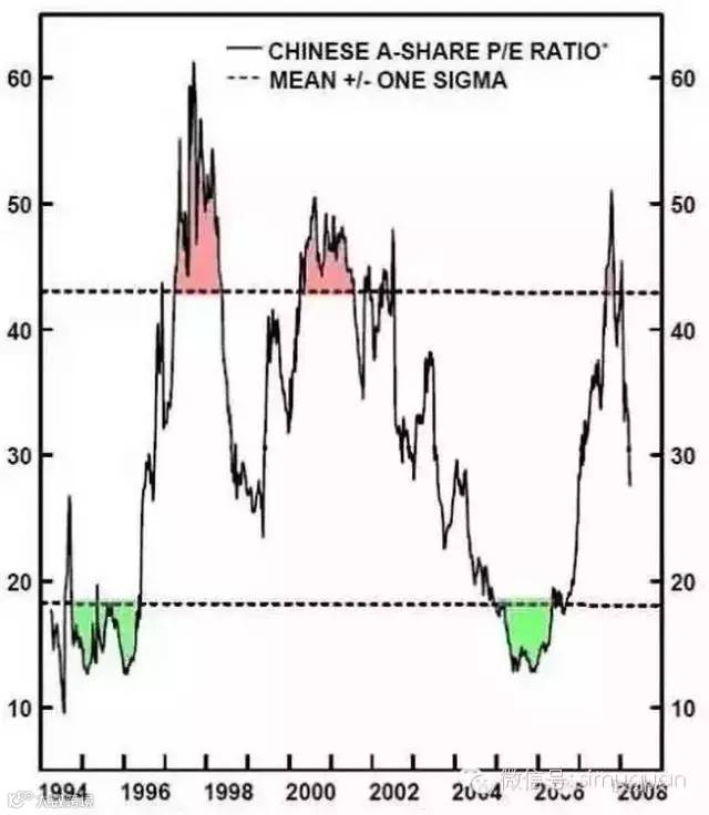 此图揭示的规律屡试不爽——当市场处于20倍市盈率以下,买入。接近50倍市盈率,卖出。
