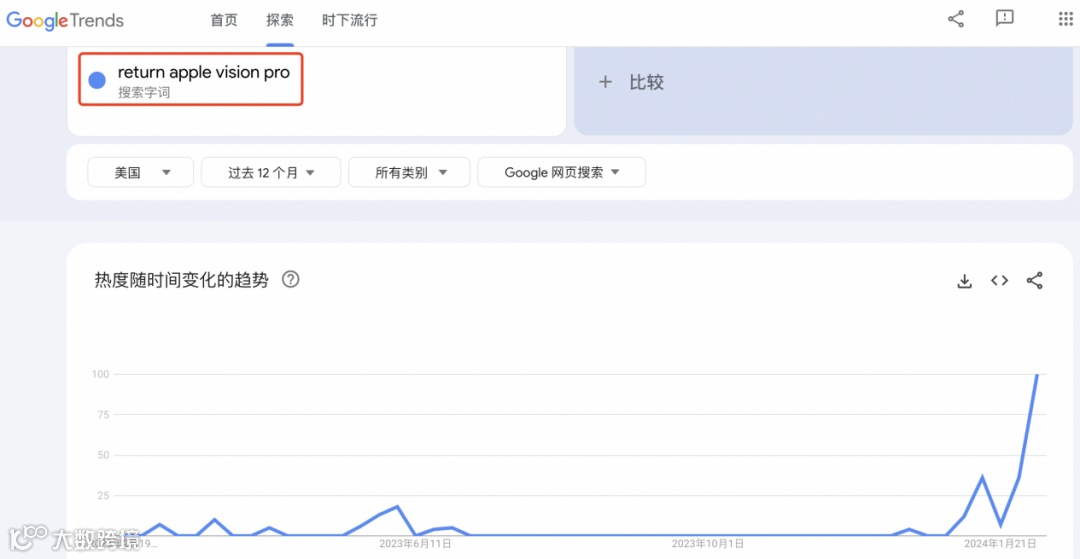 苹果Vision Pro在美发售不到两周时间,谷歌搜索趋势数据显示,“退货Apple Vision Pro”的搜索量激增。
