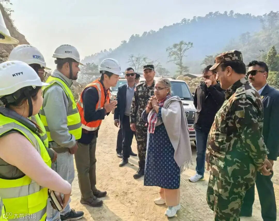 1月27日,尼泊尔总理苏希拉·卡尔基一行到保利长大承建的KTFT快速路项目2、4标段实地视察。