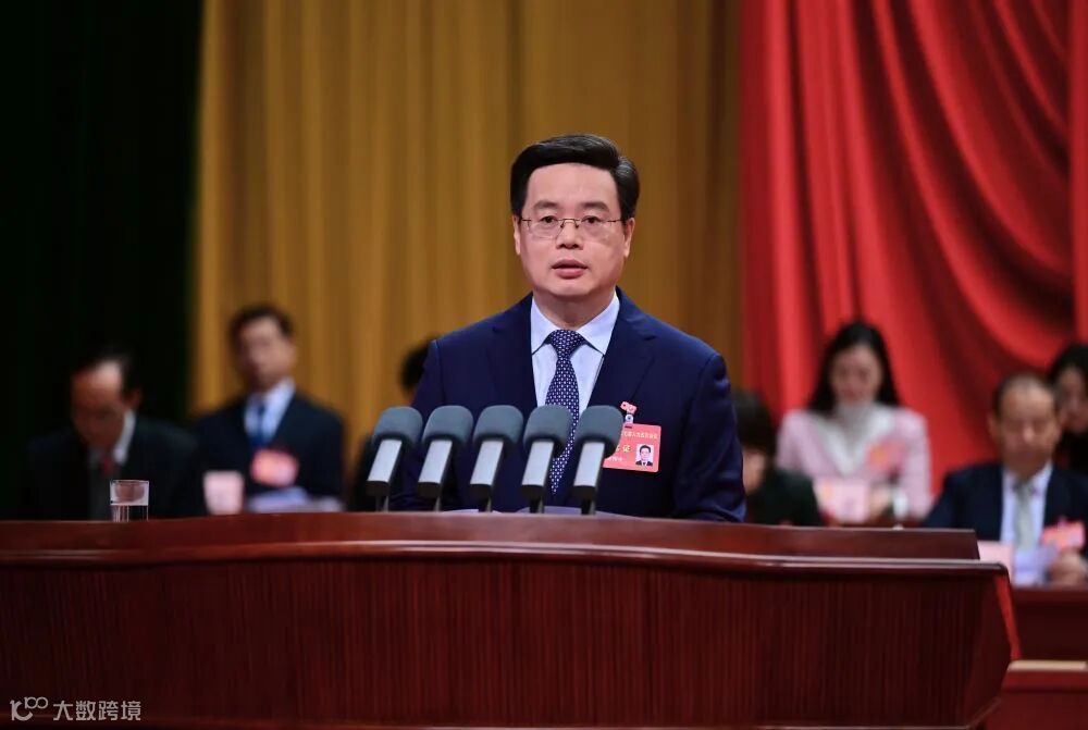 (深圳市市长覃伟中代表深圳市人民政府作政府工作报告。宋春雨/摄)
