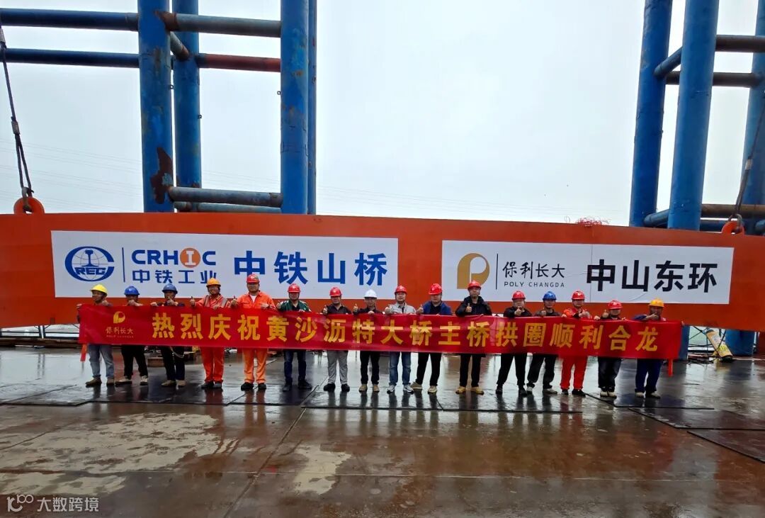 12月1日,中山东环A段项目控制性工程——黄沙沥特大桥最后一段拱肋精准嵌入合龙口,大桥主桥拱圈胜利合龙,项目建设全面转入桥面系及附属工程施工新阶段,为全线如期通车奠定了坚实基础。