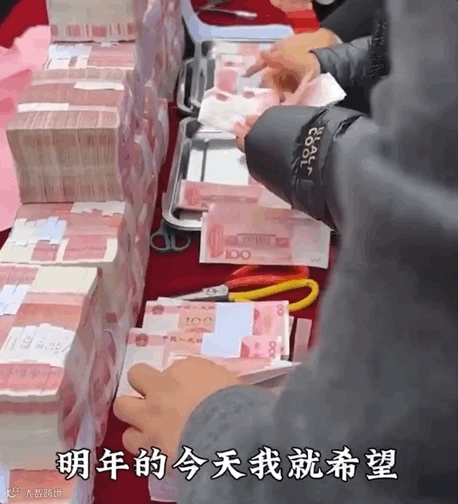 一摞摞现金在长桌上堆成了小山
