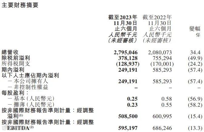 1月24日晚间,东方甄选公布的财报数据显示,在截至2023年11月30日的六个月内,东方甄选总营收27.95亿元,同比增长34.4%;净利润2.49亿元,同比下滑57.4%;经调整净利润为5.95亿元,同比下滑13.3%。