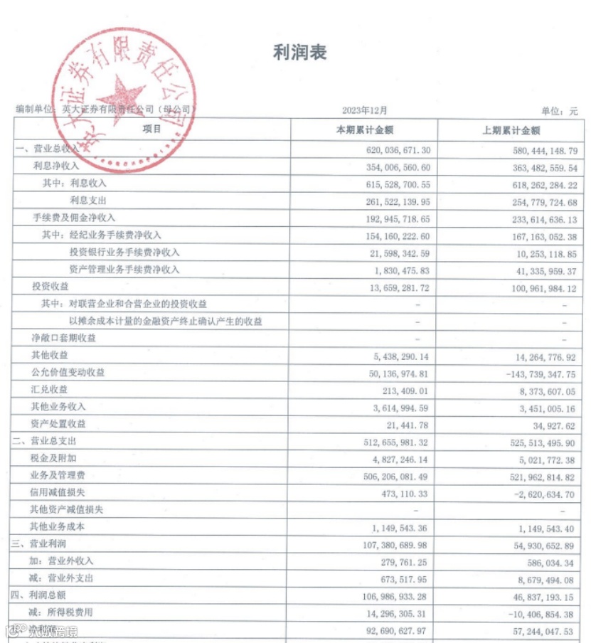 英大证券2023年净利同比增长超六成