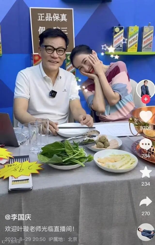 叶璇晒照当晚,李国庆发视频欢迎她来到自己直播间,女方还害羞捂脸。也有不少网友认为二人是为了直播引流。