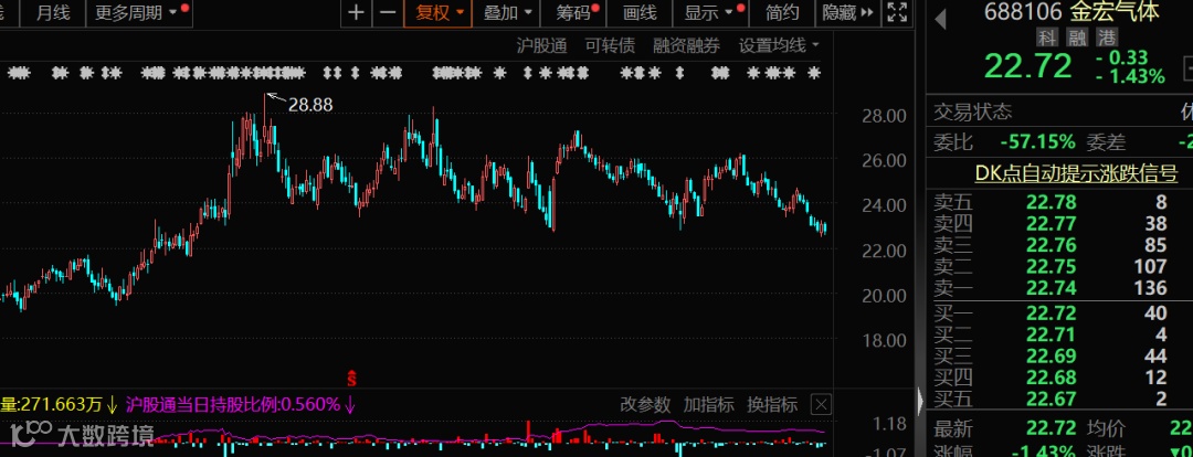 今年金宏气体股价表现亮眼,逆市大涨超22%。