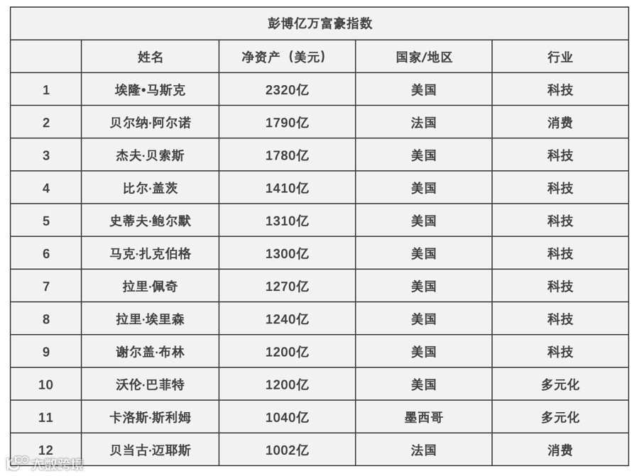 在彭博亿万富豪指数表上,特斯拉创始人埃隆·马斯克稳居榜首,其净资产约为2320亿美元,以断崖式优势领先排名第二的贝尔纳·阿尔诺,他是法国奢侈品制造商LVMH(路易威登母公司)的董事长,净资产达到1790亿美元。