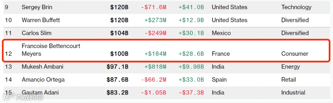 据彭博亿万富豪指数显示,贝当古·梅耶尔位列第12位,仅次于“墨西哥电信巨子”卡洛斯·斯利姆。