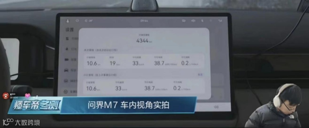 记者发现,在冬测开放日问界M7车内视角实拍中,问界M7行驶里程为10.6km,平均速度为33km/h,平均电耗38.7kWh/100km。官网显示,问界新M7的电池容量为40kWh。结合车内显示的平均电耗和问界新M7的电池容量来看,10.6km的行驶里程或许并未发挥出问界M7的全部实力。