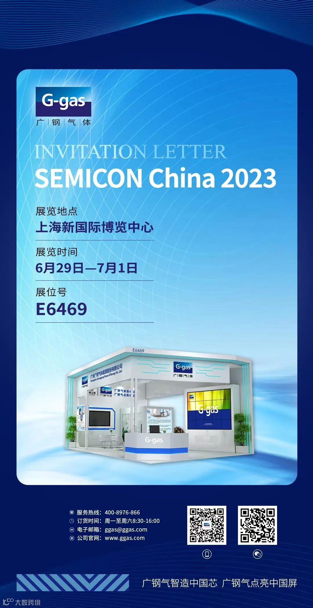 广州广钢气体能源股份有限公司(广钢气体)即将参加在上海举办的SEMICON China2023,诚邀各位客户及业界同行来参观交流,共襄盛会!