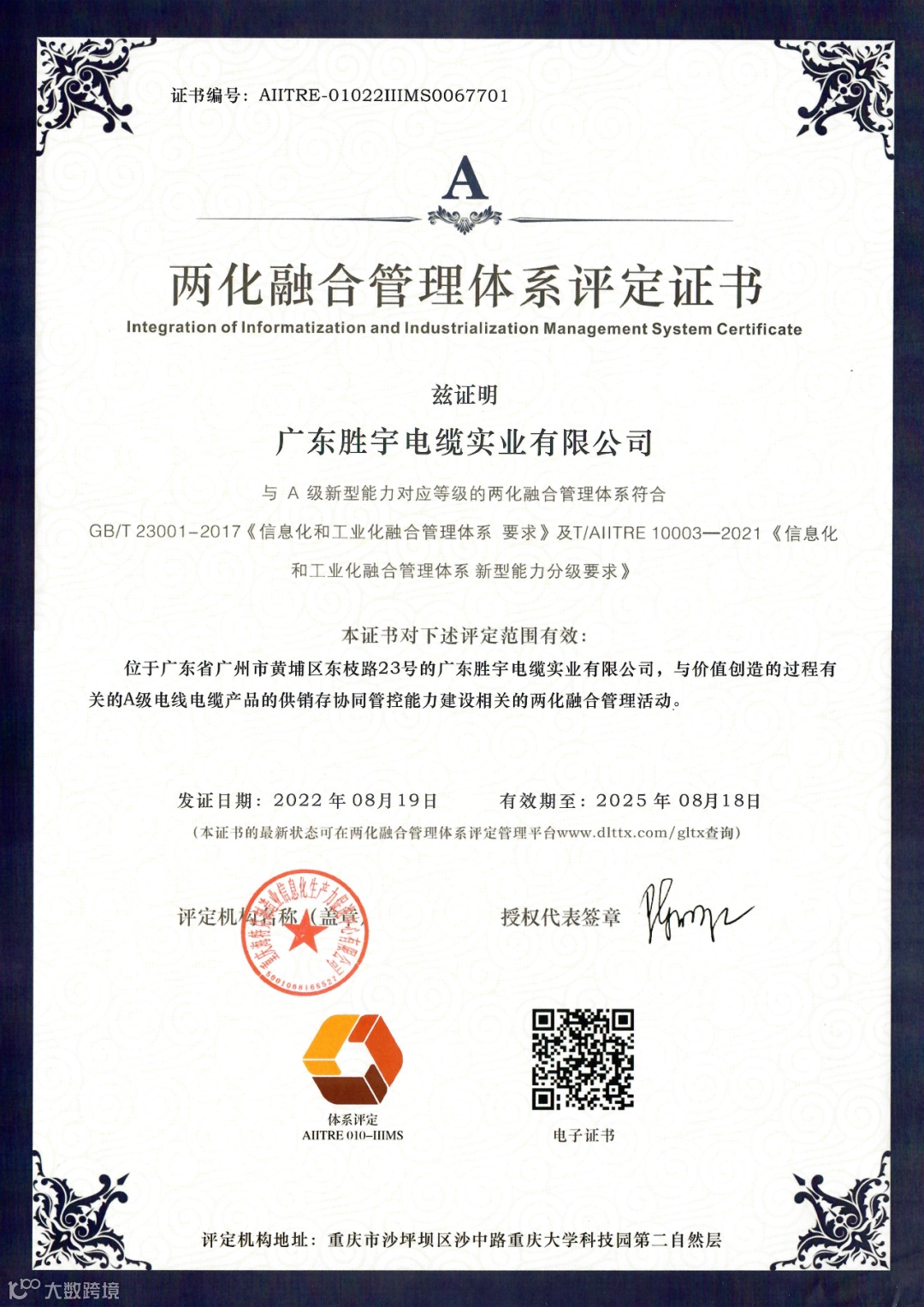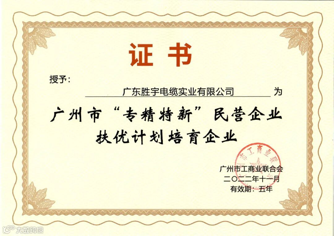 胜宇电缆近期荣誉: