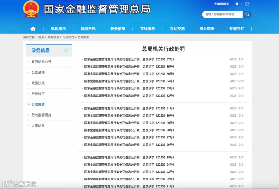 12月1日晚间,国家金融监督管理总局发布20余条行政处罚信息公开表,单张罚没金额高达2.25亿元。
