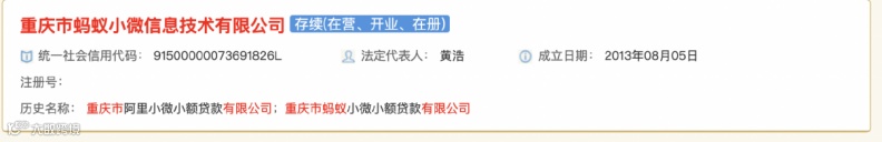 国家企业信用信息公示系统信息显示,12月11日,“重庆市蚂蚁小微小额贷款有限公司”更名为“重庆市蚂蚁小微信息技术有限公司”,除了名称之外,该公司的经营范围(含业务范围)也发生变更,其经营范围不再包括贷款业务。
