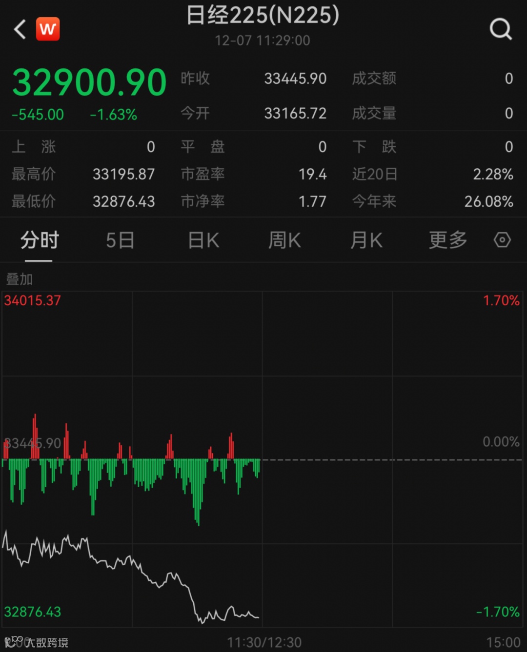 这番表态,被市场认为是日本央行收紧货币政策的明确信号。受此影响,12月7日早盘,日本股市集体重挫,日经225指数盘中一度暴跌1.7%,东证指数一度跌超1.2%。