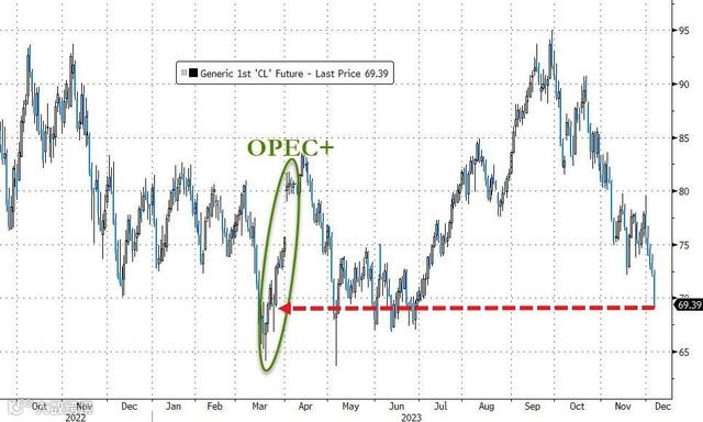 上周,多个欧佩克+成员国宣布,2024年第一季度将继续自愿减产,减产总额为日均220万桶。但分析指出,欧佩克+宣布的是“自愿减产”而不是“集体减产”,反映了其内部的分歧,引发外界对“成员国会否跟进并落实减产”产生疑问。