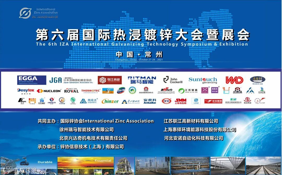 国际热镀锌大会暨展览会是国际上最有影响力的热镀锌会议之一,第六届国际热镀锌大会暨展览会将于2021年10月27日至29日在中国江苏省常州香格里拉大酒店举行。