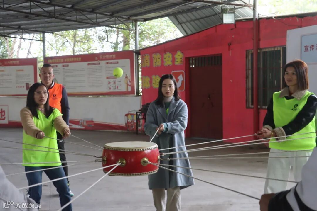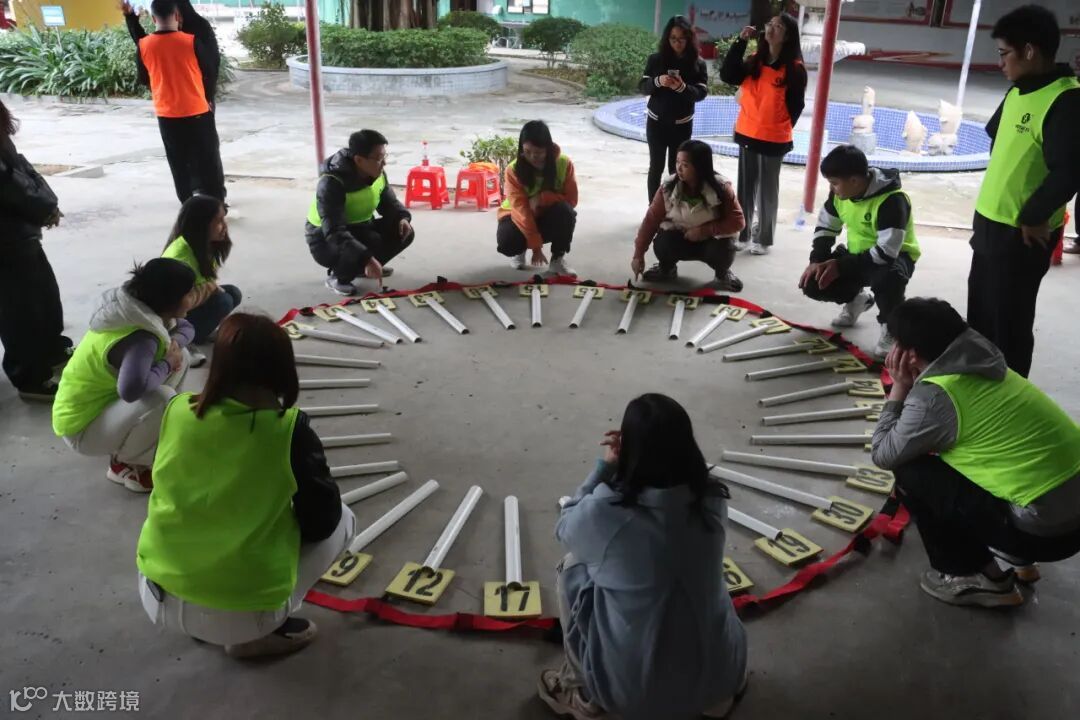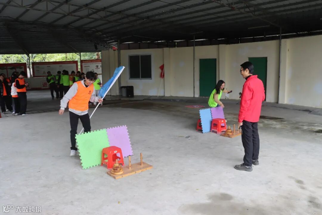 拓展活动正式开始,上午的项目是团队接力的形式进行破冰活动丶汉诺塔丶翻纸牌丶同心鼓四个项目。