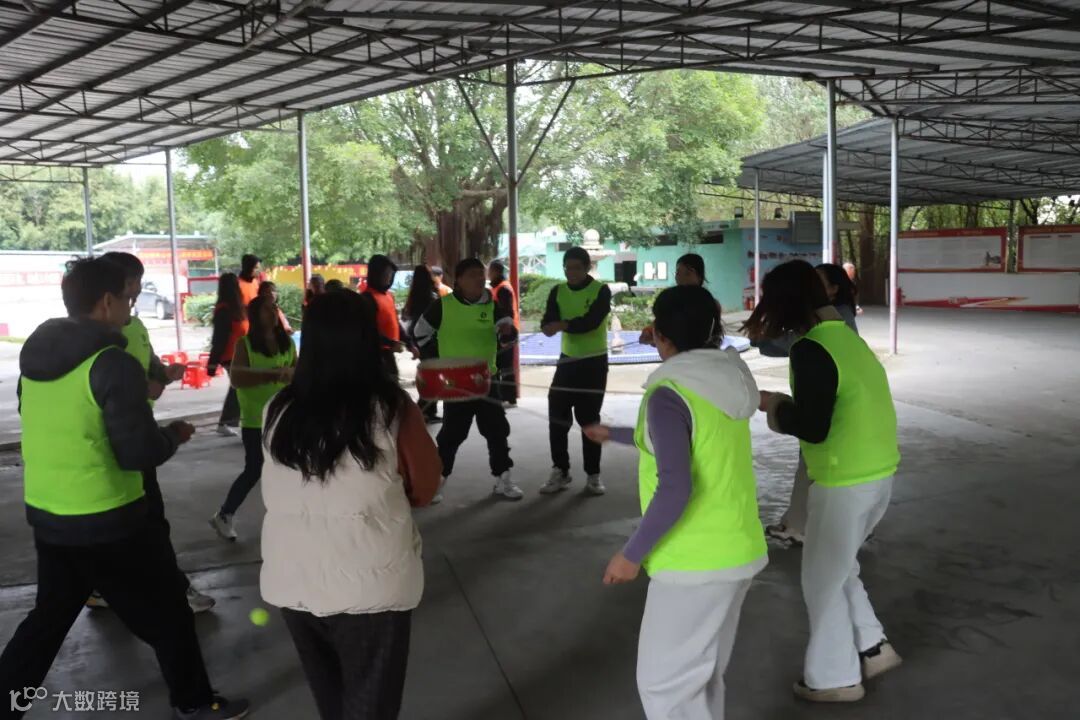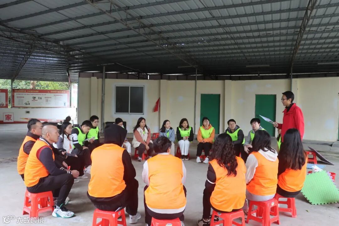活动准备阶段,在教练的带领下,团队先是进行了有趣的热身运动,然后分成两个队伍。