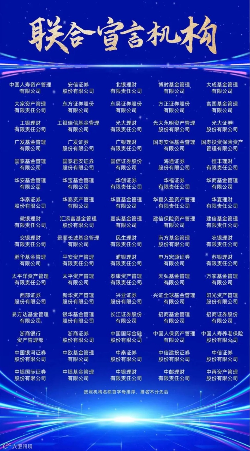 高质量发展是全面建设社会主义现代化国家的首要任务,是资管行业走好中国特色金融发展之路的核心要义。为加快建设金融强国,全面增强资管行业核心竞争力,推动以更高效率服务实体经济、以更实举措服务人民美好生活、以更大主动融入经济社会发展全局,在与国家、与时代同向奋进中提升发展质效、增强发展动能,我们郑重宣言: