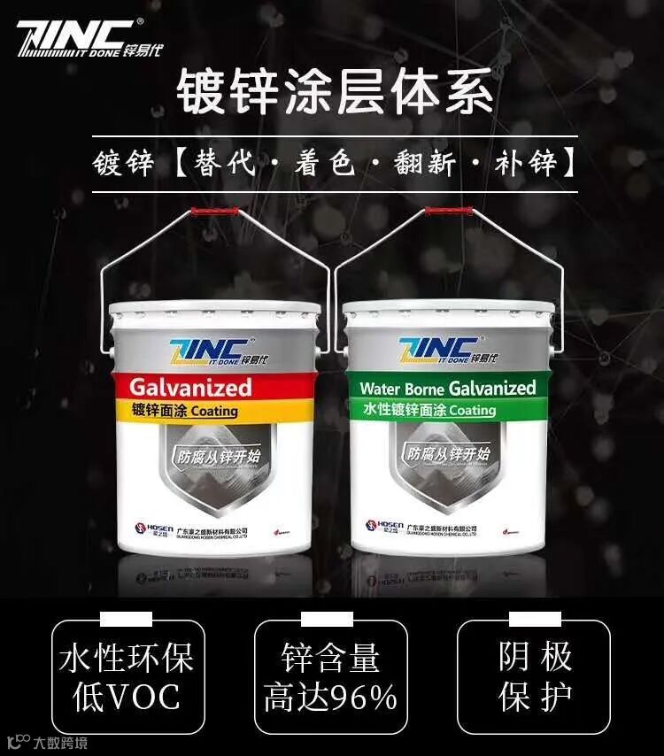 锌易代镀锌涂层具有水性环保,含锌量高防腐好,与镀锌金属及塑粉层结合力强,耐高温,耐磨耐侯,耐酸碱,施工简单且可多样化施工等特点。