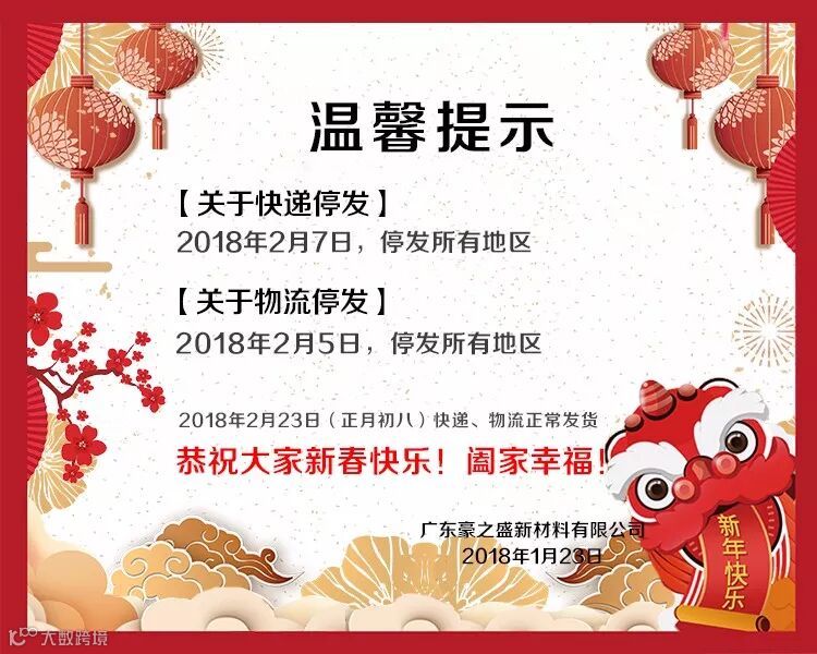 新春佳节将至,广东豪之盛新材料有限公司恭祝大家新春快乐!阖家幸福!