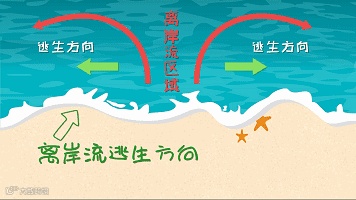 离岸流是受海岸线影响而形成的一种从海岸快速流向海洋的狭窄而强劲的水流,会将人快速带离海岸,漂向外海。人在与离岸流对抗时,容易因体力不支而溺水身亡。如不慎被卷入离岸流,请保持冷静,向离岸流垂直的方向游出。如果有风,最好顺着风的方向游。