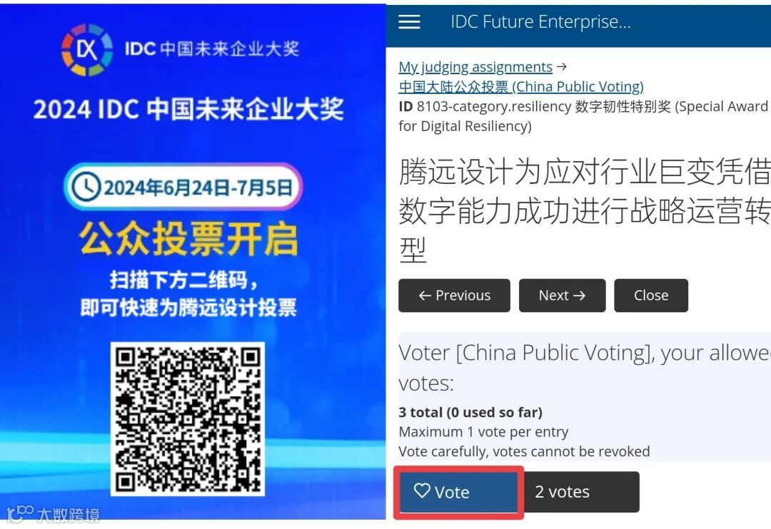 腾远设计近期正在进行2024 IDC中国未来企业大奖申报,目前进入公众投票阶段,请动动您的金手指,一起来为“腾远设计”打call吧~