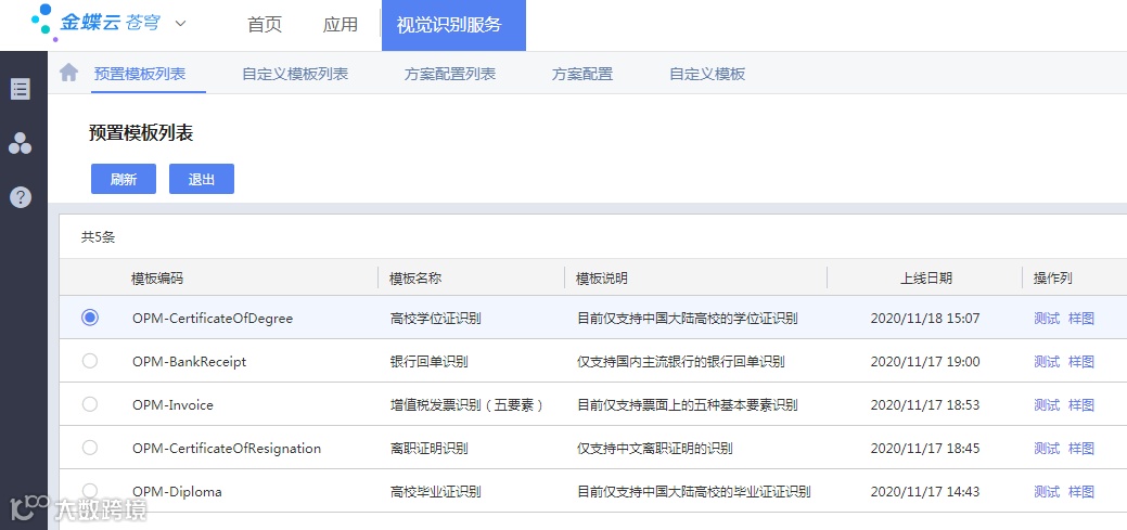 苍穹视觉识别服务,运用文字识别ocr、文本检测、NLP文本抽取等AI能力,提供开箱即用的预置文字识别服务、自定义模板的文字识别服务以及文档差异比对的能力。帮助企业以低代码方式实现视觉识别驱动的智能化场景。
