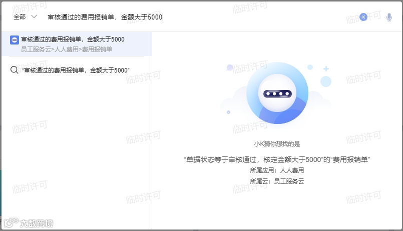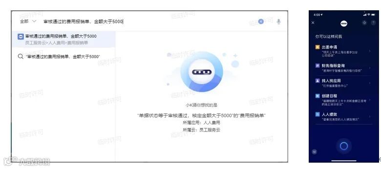 小K智能语音助手,是一个灵活便捷的智能语音机器人助手。支持一键部署,开箱即用,提供语音出差、财务智能指标查询、创建日程、查找员工和应用、社区知识问答等场景的对话技能,覆盖财务会计、员工服务、办公协同等多个业务领域。