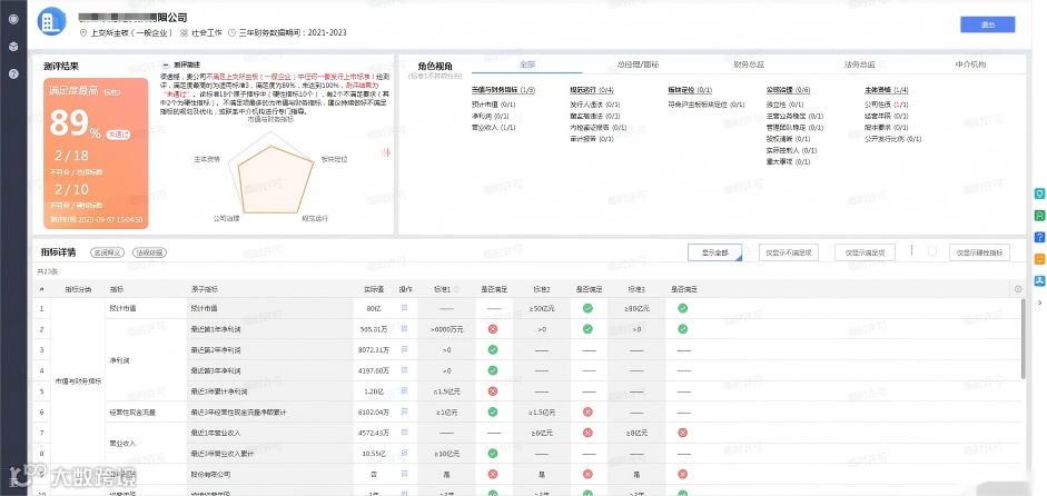 企业启动IPO筹划时,最怕板块选择不匹配、差距点不清晰,问题拖到申报前才集中暴露。IPO上市智测将各上市板块要求结构化提炼为可测评指标体系;无缝对接ERP导入关键经营与财务数据后,可定期动态测评并生成智测报告,快速校验行业属性、主体资格、股东结构等准入要点,同时结合盈利能力、收入规模、经营性现金流等核心财务指标,以及主营业务、独立性、控制权等关键要素,定位差距与风险点。通过满足度展示与持续跟踪,企业可更早识别资格硬伤与整改重点,明确更匹配的上市路径,降低试错成本。