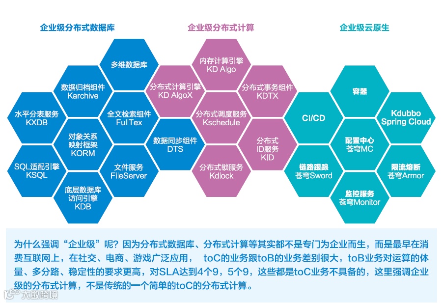 ● 企业级分布式数据库,包含了数据库很多的技术,尤其是多维数据库,数据同步组件等。
