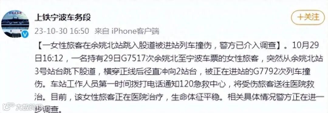 10月30日,@上铁宁波车务段发布相关情况通报:
