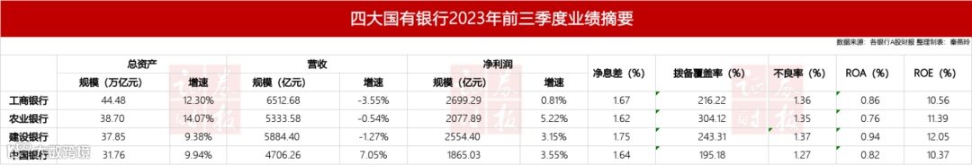 随着中国银行三季报的披露,四大国有银行2023年三季报已尽数出炉。