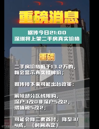 11月2日,深圳市场开始疯传,低于每平方米13.2万元的房源可以显示真实的业主挂牌价!