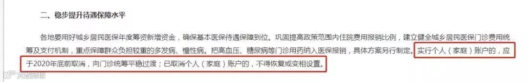 前段时间,国家医疗保障局、财政部印发了《关于做好2019年城乡居民基本医疗保障工作的通知》,文件当中有一条规定:实行个人(家庭)账户的,应于2020年底前取消,向门诊统筹平稳过渡;已取消个人(家庭)账户的,不得恢复或变相设置。