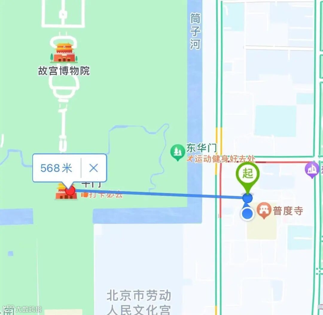 地图软件显示,该房屋距故宫博物院午门直线距离568米(网络截图)