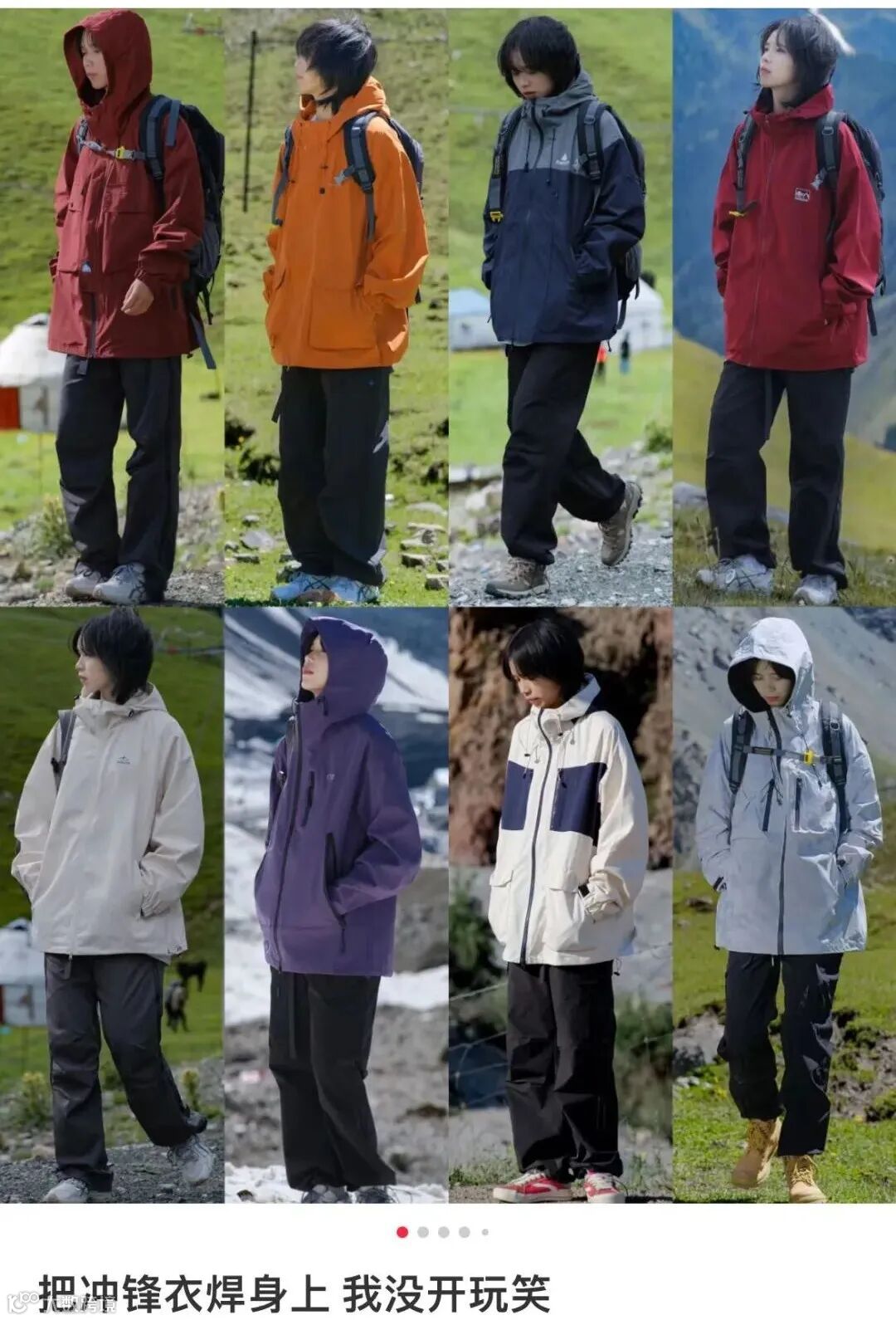 虽然也关注防水防风的功能属性,但年轻人也很爱冲锋衣的穿搭属性。